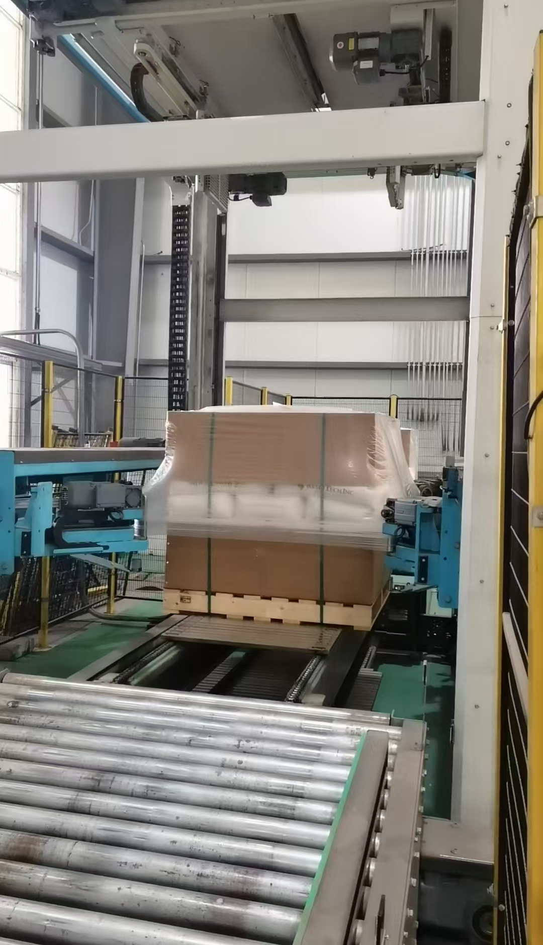 紙袋:A套膜機+翻轉機+A套膜機(速度≤25托盤/小時)